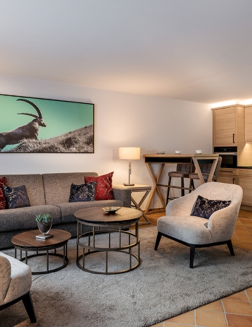 Balkon mit Blick auf das Zermatter Dorfleben. Schlafzimmer Suite. 2 Doppelschlafzimmer mit Badezimmer, Whirlpool/WC. Gemütliches Wohnzimmer mit offenem Kaminfeuer, Sofa und Esstisch. Separates WC. Einige mit privater Sauna oder Kochnische.